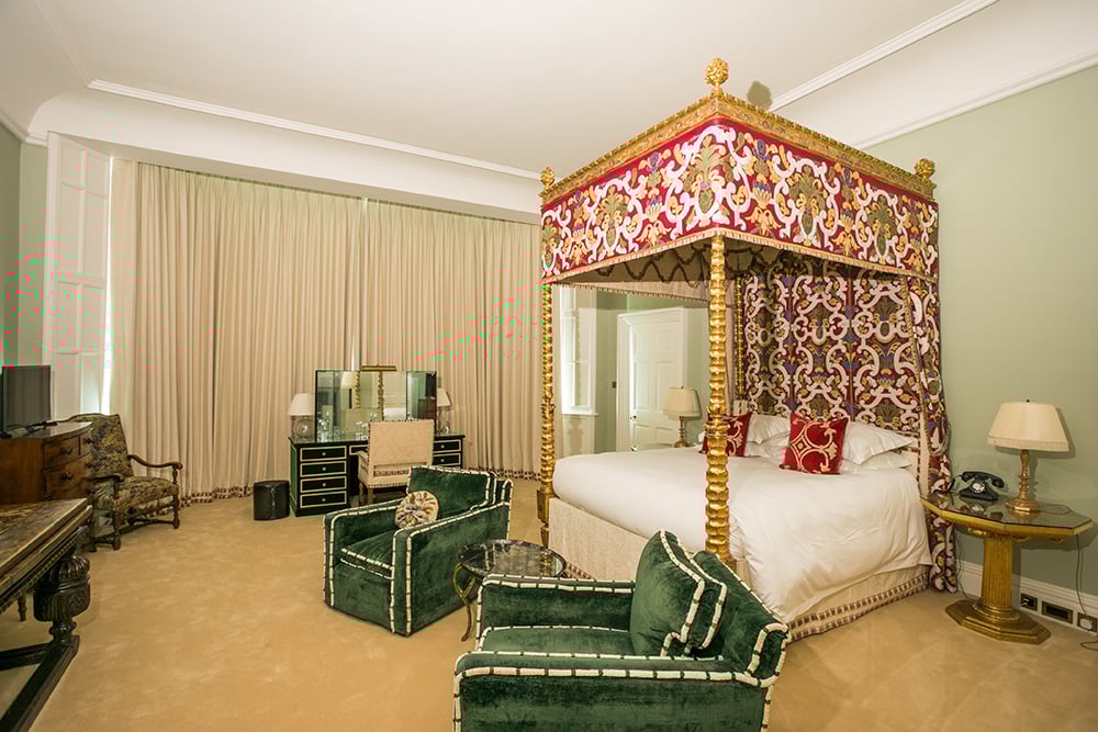 In more recent years, the Green Bedroom was re-decorated with inspiration from Boudin’s nephew and designer, Claude Mandron, and the room has been popular ever since with both overnight wedding and corporate guests at the Castle.
