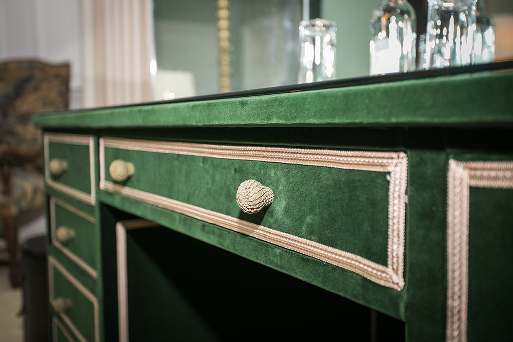 When Lady Baillie first renovated Leeds Castle in the 1920s, she chose the famed French furniture maker and designer Armand-Albert Rateau to create the interior schemes. The Green Bedroom was designed by Rateau as one of the main guest bedrooms, which was later adapted by another celebrated French designer, Stéphane Boudin, who collaborated with Lady Baillie on the interiors at Leeds Castle for more than 30 years.