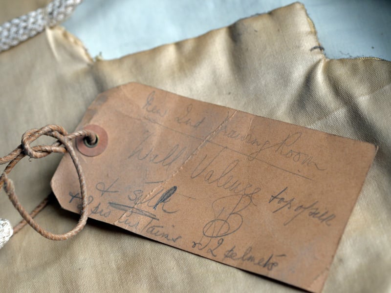 The lambrequin was sent away for conservation At Zenzie Tinker Conservation in Brighton and involved wet cleaning using solvents to remove ingrained dirt from the tassels, and also some areas of conservation stitching to stabilise light damaged areas.