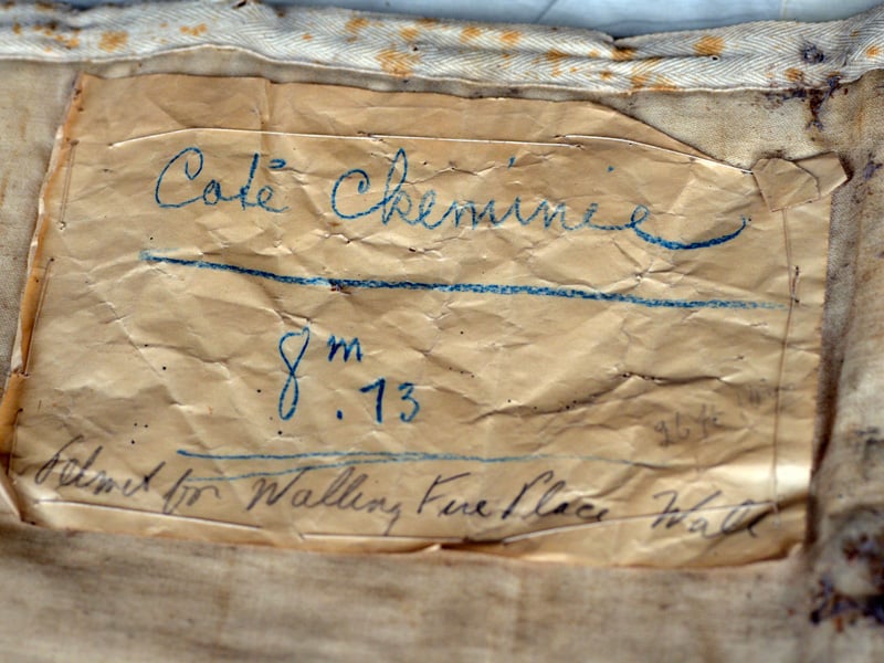 By 2017 the decoration had degraded badly. Whilst the yellow wall silk had survived largely intact for nearly 80 years, it had suffered from light and other environmental damage, resulting in areas of severe wear and degradation, as well as water staining, ingrained dirt and discolouration. The original curtains which had been made from the same yellow silk as the walls, had at some point been sacrificed to repair large areas of the wall hangings, and had been replaced by a sub-standard cotton damask.